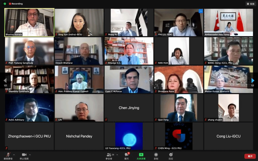 本次视频研讨会是北京大学中外人文交流研究基地与尼泊尔国际与战略研究所在庆祝中国共产党成立一百周年之际,受中国驻尼泊尔大使馆委托并经中国外交部批准联合举办的。我校教师在研讨过程中与参会代表进行了充分交流,发言受到主办方和参会代表好评,展现了我校尼泊尔语专业语言文学教育水平,以及我校尼泊尔研究中心在尼泊尔国别研究、文化交流史研究等方面的成果。