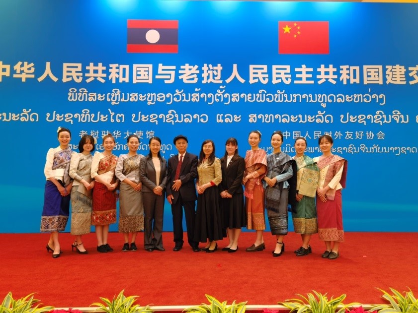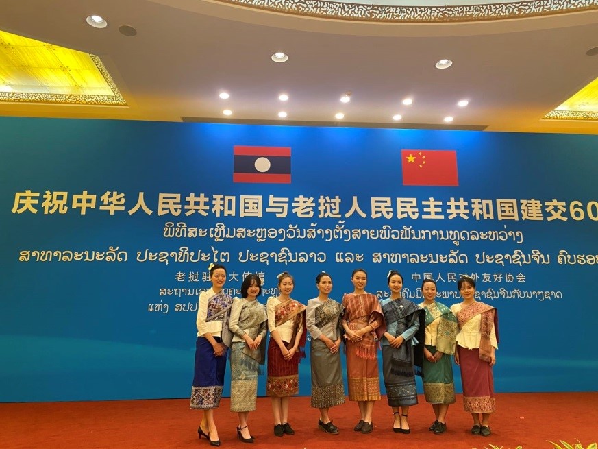 老挝语专业四位教师及2017级部分本科生应邀参加中国人民对外友好协会与老挝驻华使馆共同举办的庆祝中老建交60周年招待会。