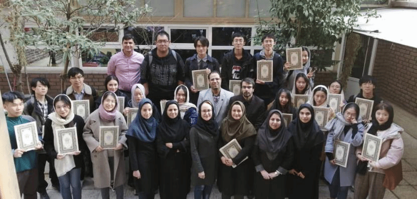 (2017级波斯语本科学生在伊朗塔巴塔巴伊大学留学,伊方教师为学生颁发毕业证书)