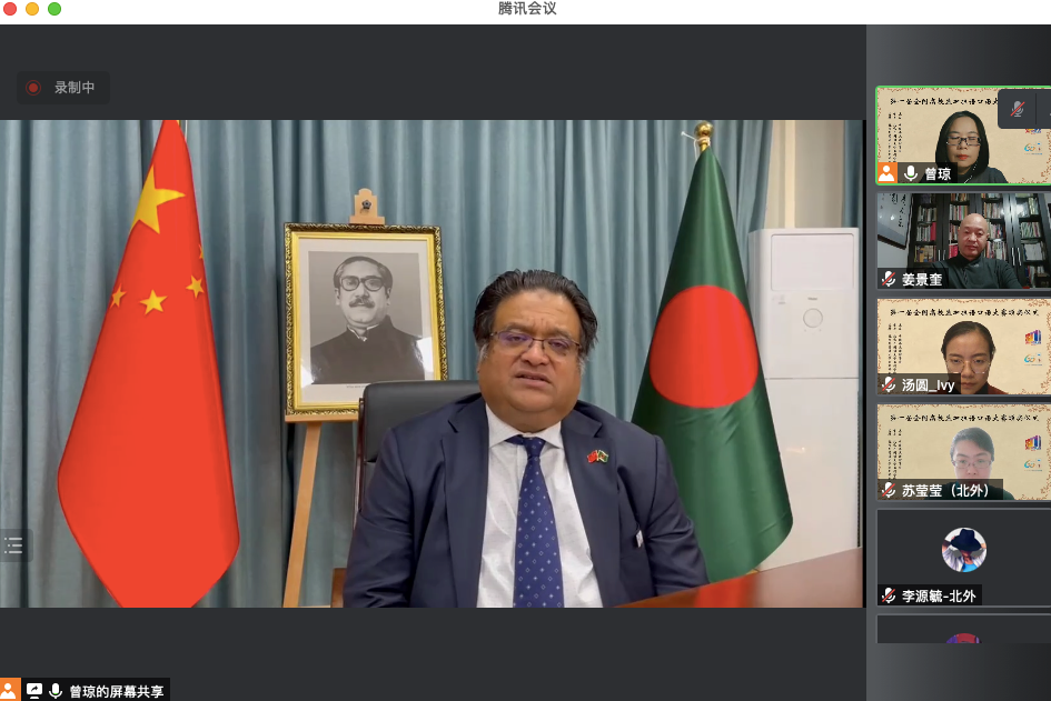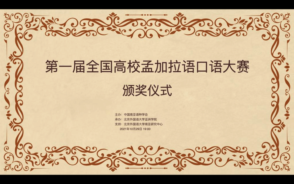 2021年10月29日晚,“第一届全国高校孟加拉语专业口语大赛”颁奖仪式以线上形式举行。孟加拉国驻华大使为发来祝贺视频,中国南亚语种学会会长、教育部高校外指委副主任委员、非通用语分指委主任委员、北京大学南亚研究中心主任姜景奎教授,亚洲色情网
