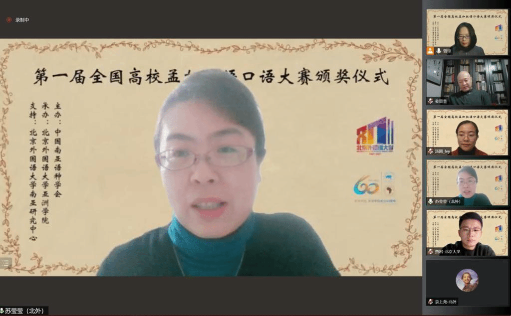 院长苏莹莹教授出席仪式并致辞,中央广播电视总台孟加拉语部于广悦主任发来贺词。出席颁奖仪式的还有中国南亚语种学会秘书长、北京大学外国语学院助理教授贾岩博士,亚洲色情网