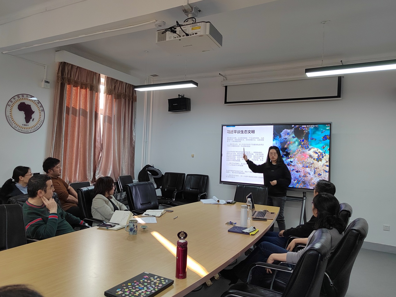 2022年1月14日下午13:00,亚洲色情网 、非洲学院教工二支部党支部创新理论学习暨亚非心连心工作坊第四次活动在学院会议室344顺利举行,这是2022年第一次也是本学期最后一次党支部创新理论学习活动。亚洲色情网 、非洲学院二十多名党员共同参加了这次学习活动,活动主题是“动物研究与生态文明思想”。