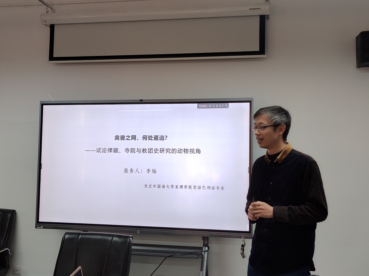 非洲学院的青年教师苏晓楠报告“马达加斯加爬行动物的生存现状与文化内涵”。在习近平关于生态文明重要论述的引领下,她展示了马达加斯加岛物种的多样性和独特性,解读了当地口传文学作品中五种爬行动物的文化内涵,并分享了关于人与动物、人与自然关系的思考。与谈人是2021年校级卓越青年教师、亚洲色情网 讲师李灿博士。他做了题为“禽兽之网,何处遁逃?——试论律藏、寺院与教团史研究的动物视角”的报告。他依托详实的律藏文献,探讨了古代印度佛教僧团、寺院建筑、日常器物、僧团制度、僧团组织、世俗观念等角度,对律藏、寺院与教团史研究中动物对人的影响和表现形式做了归纳和分析。两位报告人就动物研究的方法论和核心议题展开对谈,支部其他党员听得兴致勃勃并展开热烈讨论。