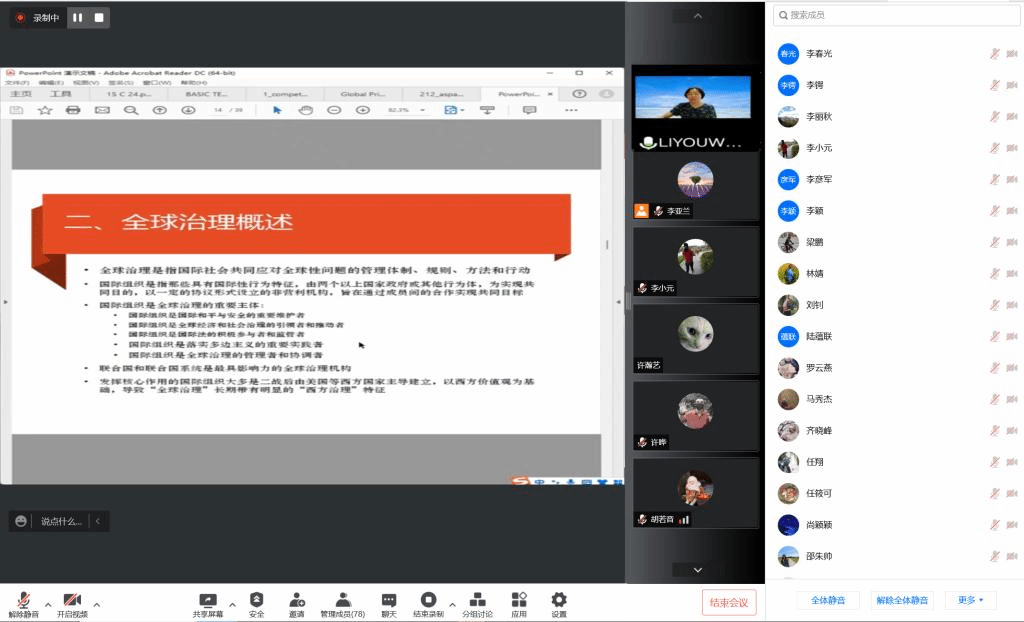 非洲学院党总支书记许晔对学习活动进行了总结,他表示李又文老师的讲座不仅让我们深入了解了联合国教科文组织的架构、工作机制,丰富了我们关于全球治理概念、亚太及非洲区域在全球治理中的优先事项等方面的重要知识,也引发了我们对培养什么样的外语人才以更好地适应国家参与全球治理事务的需求等诸多方面的思考,他鼓励老师们将理论学习与自己的实际科研、教学工作紧密结合,思考如何将理论所得应用于对实际工作的指导中,以克服学做两张皮现象,提高全体教师集中理论学习活动的效能。