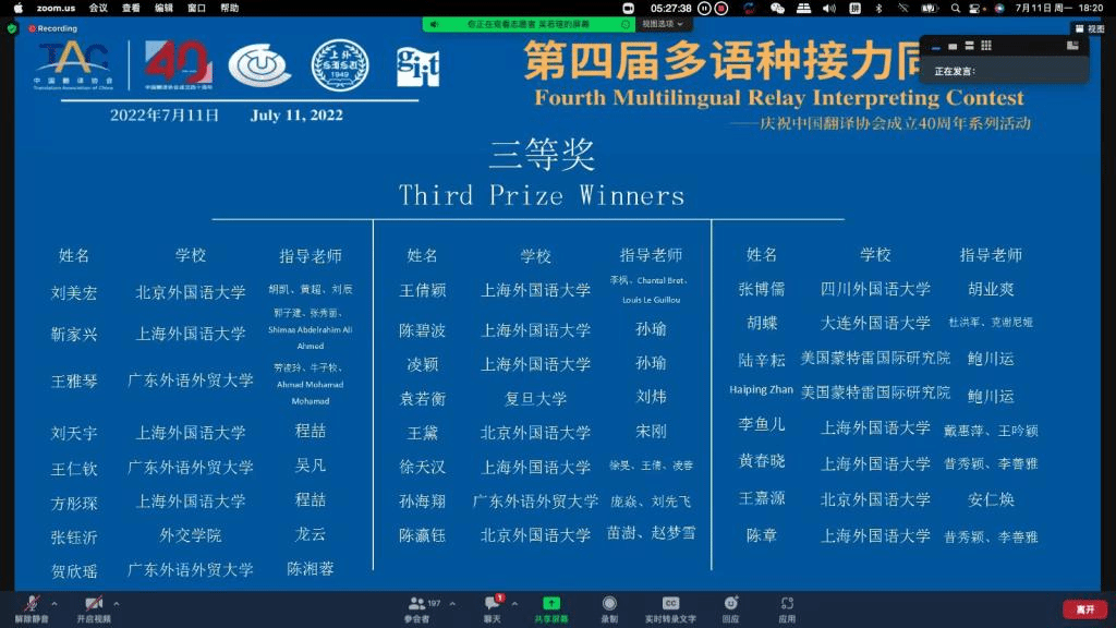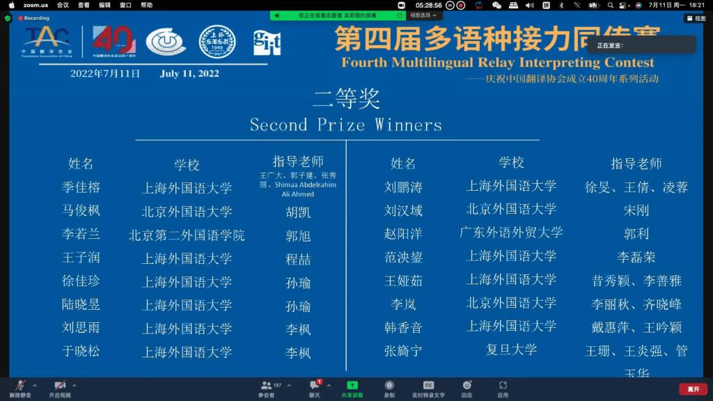 2022年7月11日,由上海外国语大学主办,中国翻译协会(口译委员会)和国际大学翻译学院联合会亚太办公室指导的第四届多语种接力同传赛决赛阶段比赛圆满落幕。我校亚洲色情网