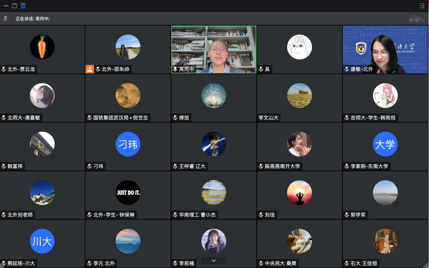 地区研究教研室康敏副教授主持。除北外师生外,还有来自全国各所高校和研究机构的老师学生们通过线上参与讲座,并与高丙中教授进行了深入交流,就合作民族志、区域一体化等话题开展讨论。最高时在线人数达180多人。