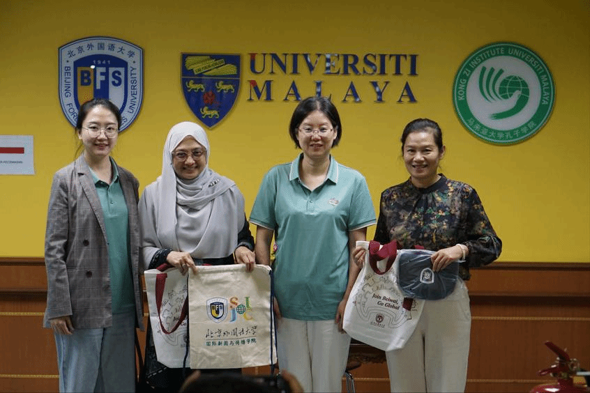 合办。孔子学院中方院长朱丽教授、马方院长艾琳教授(Dr. Noor Zalina)及孔院项目负责人Erra、孔院教师戴莹、张力珂、马来西亚本土教师Afifa参加了调研座谈会。艾琳教授与朱丽教授介绍了马大孔子学院成立以来的基本情况和活动特色。实践团就孔院如何在教学过程中克服跨文化传播障碍,如何讲述抽象的中华文化,孔院学生如何就业等问题,与孔院教师进行了交流。中方教师张力珂认为,马来西亚本土文化多元多彩,本土学生对中华文化具有较强的学习和适应能力;孔院也会定期举办丰富多彩的文化活动,帮助学生在实践中学习和理解中华文化。马方院长艾琳博士表示,来自不同专业背景的学生在孔院的教学和文化交流中,加强了对汉语的兴趣,也加深了中华文化的理解和认识,很多同学在就业时会期望接触和使用汉语,或选择与中国有业务合作的政府部门或企业工作。