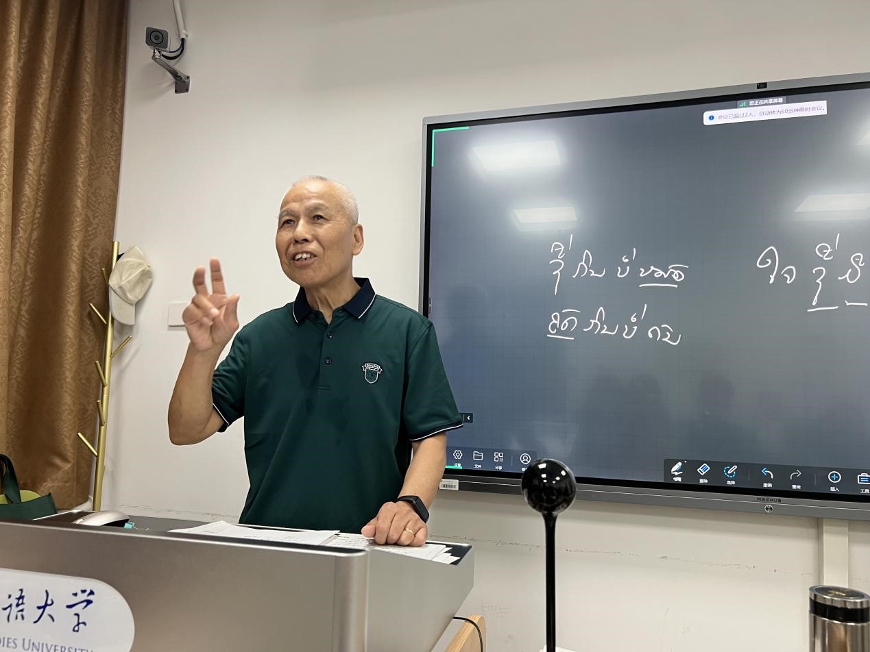老挝研究中心和老挝语教研室邀请,张良民教授在逸夫楼317教室进行了一场线上线下结合的讲座,主题为“解读老挝谚语”。陆蕴联教授主持此次讲座。