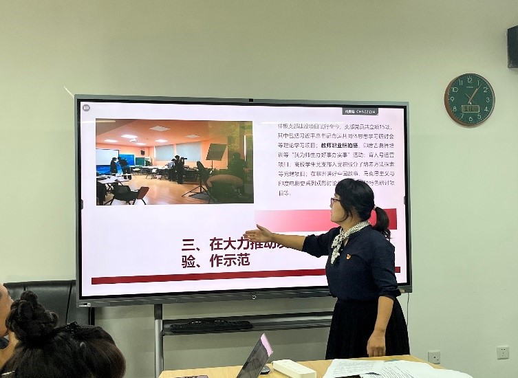 非洲学院第二教师党支部主题教育成果总结”的报告,从做实理论学习、深化调查研究、大力推动发展、细致检视整改、主动建章立制五方面系统总结了样板支部的建设进展和成效。她表示,要充分发挥基层党组织的战斗堡垒作用,以高质量的“我为师生办实事”工作成效,增强师生福祉,推动“一融双高”建设。