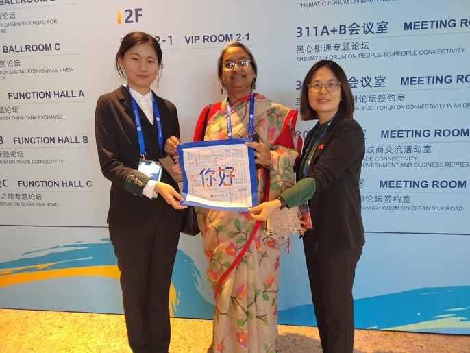 共派出7名志愿者,其中朝鲜语1人,土耳其语2人,柬埔寨语2人,老挝语1人,孟加拉语1人。此外,在教育部国际司的邀请下,北外协助接待前来参加 “一带一路”高峰论坛的孟加拉国教育部长,我院孟加拉语专业曾琼教授为其进行了陪同翻译工作。