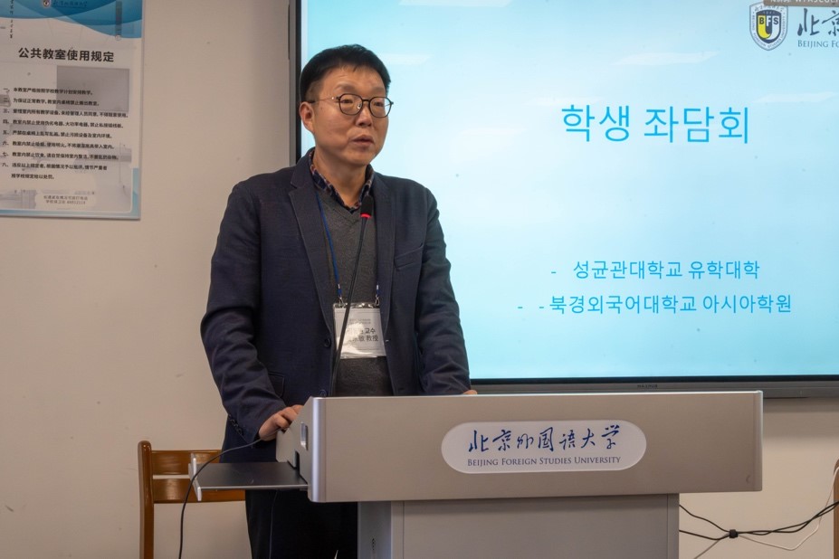 成均馆大学儒学学院院长金东敏教授对我校师生的热情接待表示了衷心的感谢,并希望两校间加强合作、友谊长存。