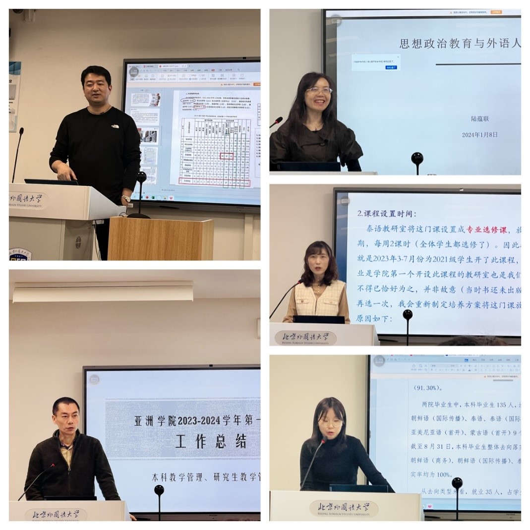 三位资深教师老挝语陆蕴联教授、泰语陈利副教授、朝鲜语汪波副教授分别进行了题为“思想政治教育与外语人才培养”、“思政小课堂,社会大课堂—从‘泰语讲中国文化’看课程思政”和“外语专业课程思政教学设计与素材挖掘—以《新经典韩国语精读教程》为例”的发言,三位老师结合自身丰富的教学和育人经验从人才培养、课堂教学、教材编写与使用等不同角度,分享了课堂思政如何融入外语教学的实践与经验。