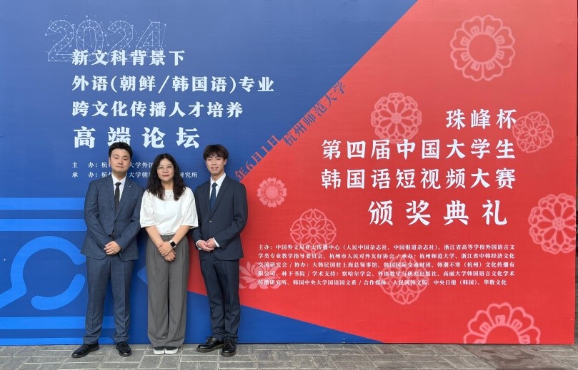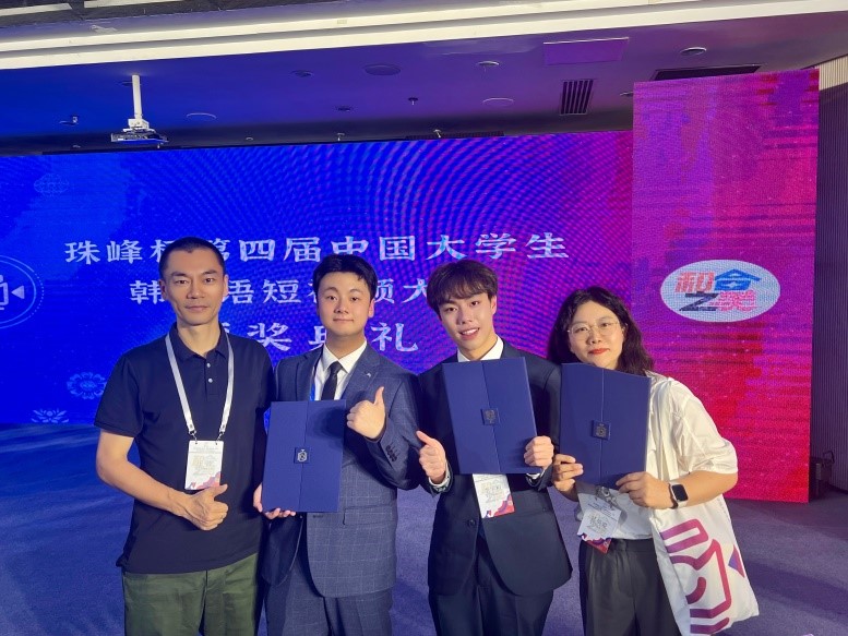 2023级朝鲜语专业王智轩、李宇桓两名同学从来自全国各高校朝鲜语专业的众多作品中脱颖而出,获得全国三等奖。同时,为两名同学提供指导的延英爱老师获得了优秀指导教师奖。