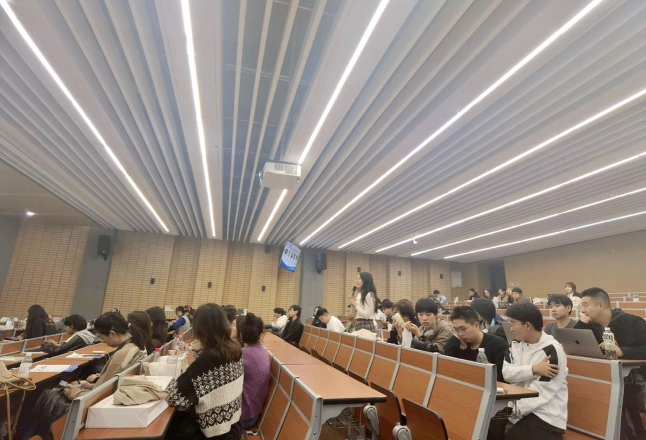 郭颂分享了自己在文学教育事业笃行二十余年,在文学、逻辑学等领域广泛涉猎的经历,使同学们受益匪浅;何晨讲述了自己在大韩航空深耕二十年的经历和感悟,为在校生毕业后进入韩企提供了宝贵建议和指导;黄婉迪讲述了自己跨国跨行业主动求变、主动转型的历程,并强调把过往经历凝聚成个人核心竞争力的重要性;管施霖分享了自己坚定追求梦想、跨至互联网行业的经历,激励同学们在选定的方向上坚定前行;赵洁讲述了自己跨越部委、央企、外企的多维职业历程,并结合自身对外语专业优势的洞见,勉励同学们以语言专业为跳板,将人生之路走得更宽更广。