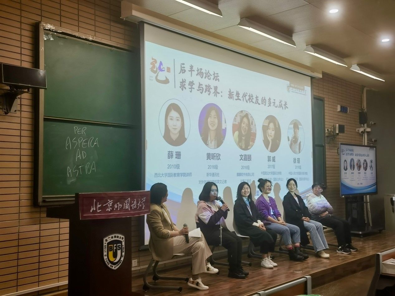 论坛后半场围绕“求学与跨界:新生代校友的多元成长”这一主题展开,2010级校友薛珊、2016级校友黄昕欣、文嘉颐、2017级校友郭威、2018级校友徐硕分享了各自的跨行业职场感悟与跨界求学经历。