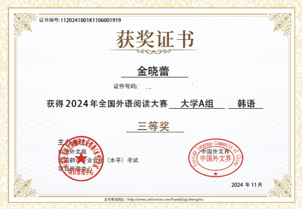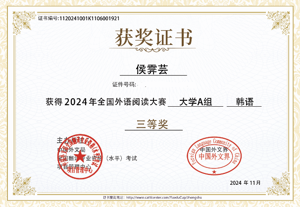 朝鲜语专业多名本科学生取得了优异的成绩。