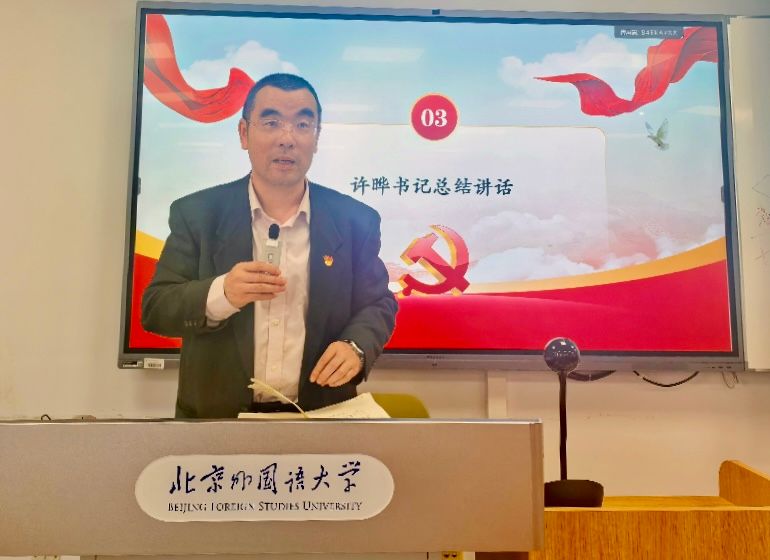 、非洲学院党总支许晔书记进行总结。他强调“国际影响力”是教育强国的六大特质之一,两院教师要主动制定对象国出访计划,积极开展国际合作与交流,拓宽国际视野,提升国际对话能力。此外,他指出要深化支部工作法、班主任工作办法制度化、规范化,并推动已出台的相关文件落地见效,全面落实立德树人根本任务,在教育强国建设征程中奋勇前行。