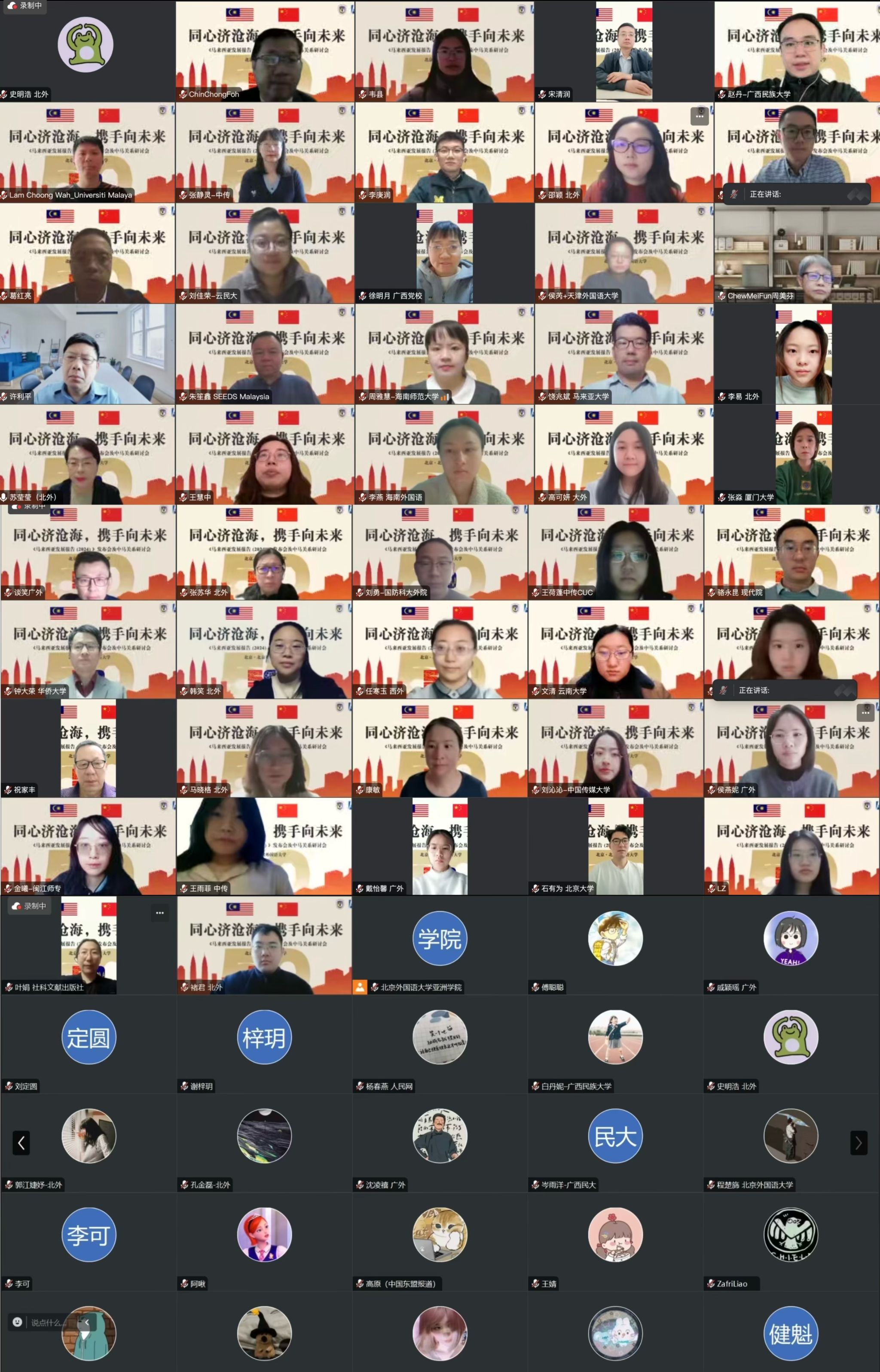 中国马来研究中心、北京大学东盟国家研究中心、社会科学文献出版社联合举办的《马来西亚发展报告(2024)》新书发布会暨“同心济沧海,携手向未来”中马关系研讨会通过线上方式顺利举行。来自中国社会科学院、中国现代国际关系研究院、北京大学、华侨大学、厦门大学、国防科技大学、中国传媒大学、云南大学、中山大学、天津外国语大学、大连外国语大学、西安外国语大学、广东外语外贸大学、云南民族大学、海南师范大学、广西民族大学、中共广西区委党校、闽江师范高等专科学校、海南外国语职业学院以及马来亚大学、马来西亚拉曼大学、马来西亚鑫智库、新加坡国立大学等高校和研究机构的专家学者、年轻学子,以及社科文献出版社的领导和编辑等共70余人出席会议。