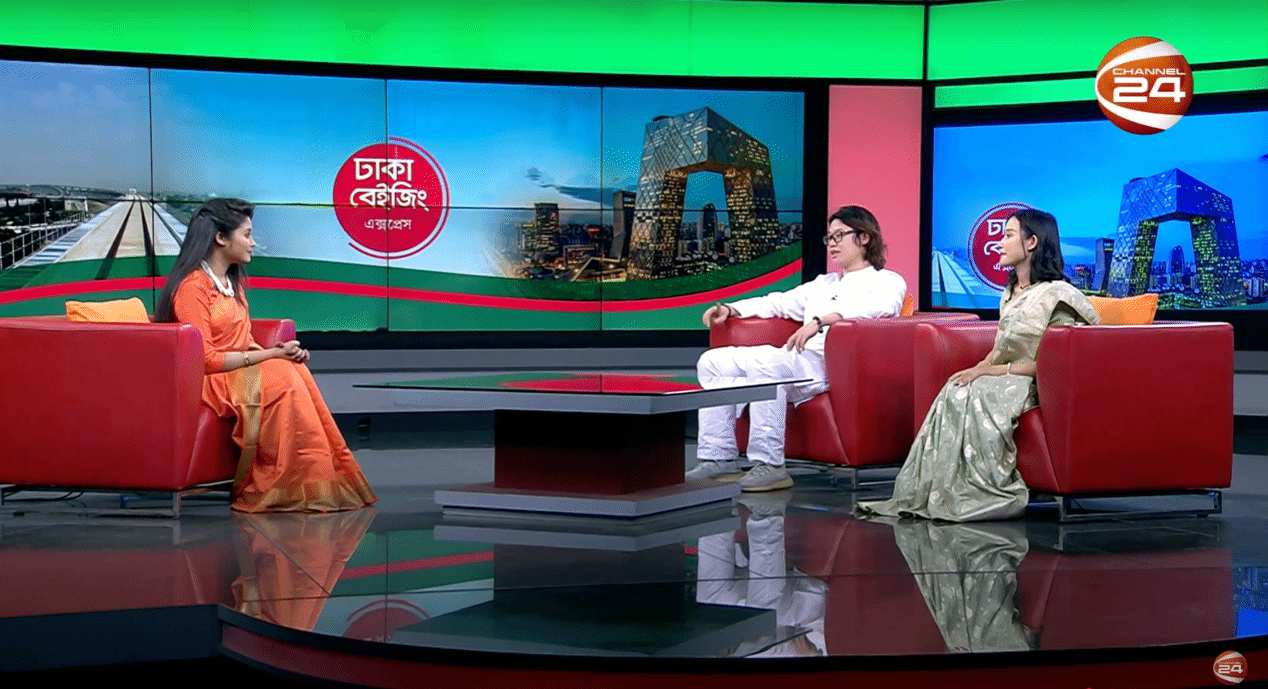 孟加拉语专业本科生于孟加拉国当地时间4月4日受邀参加孟加拉国知名媒体Channel 24与中央广播电视总台(CMG)联合承办的《达卡-北京快线(Dhaka Beijing Express)》专题栏目。此次专访通过电视直播及多平台同步推送,向孟加拉国全国观众展现了中国青年学子研习孟加拉语言文化的生动图景。
