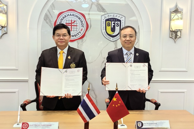 4月25日,代表团访问泰国诗纳卡琳威洛大学。诗纳卡琳威洛大学校长春拉威·吉拉杰会见代表团一行。春拉威·吉拉杰介绍了诗纳卡琳威洛大学的办学成就,尤其是在教育学、经管类学科建设和研究方面取得的成果。贾德忠介绍了北外在中泰教育交流中发挥的作用,期待在联合开展东南亚研究、教育学科研究交流方面进行更多合作。双方签署《亚洲色情网