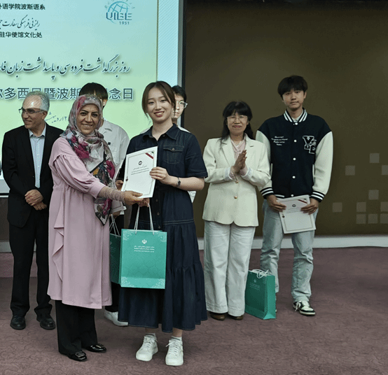 2025年5月15日,第五届全国波斯语演讲比赛颁奖典礼在对外经济贸易大学举行。我校2024级波斯语班马麒竣同学获朗诵组一等奖,王子涵和张靖苒同学获得朗诵组优胜奖,2021级波斯语班马恩路同学获得演讲组二等奖,田伟杰同学获得演讲组三等奖,姚远同学获得演讲组优胜奖。