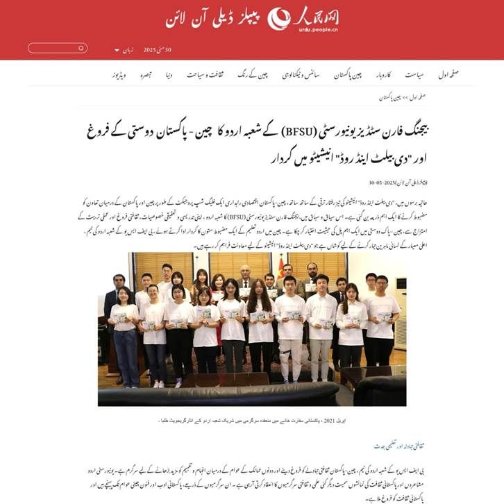 乌尔都语专业教师在“人民网”乌尔都语版发表文章,不仅展示了北外乌尔都语专业建设的丰硕成果,还借助这一国际化平台,进一步提升了北外的学术影响力与国际声誉。