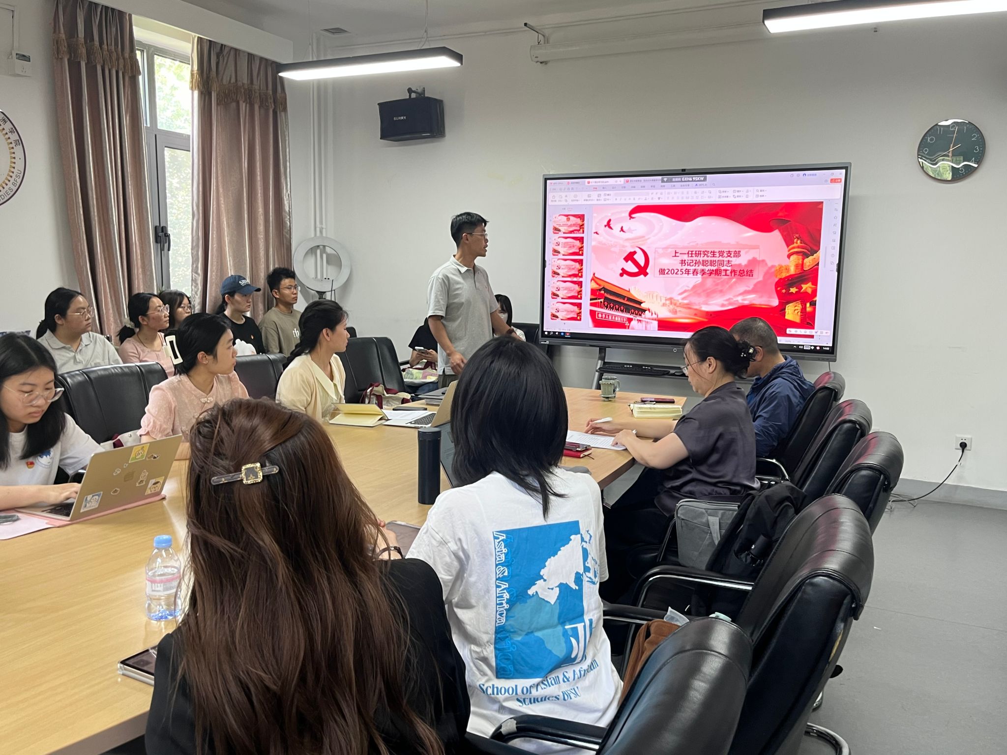 非洲学院第一、第二研究生党支部于主楼344会议室举办了党支部集体理论学习活动暨学期工作总结会。本次活动分为党支部工作总结、新任支委任命与总支书记寄语、理论学习三个部分展开。亚洲色情网