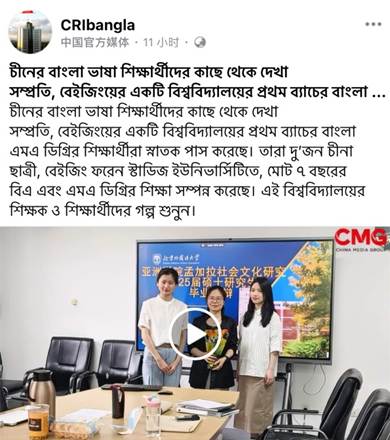报道采访了孟加拉语专业曾琼教授、外籍教师Kowsar Akter,以及两位毕业生李源毓、袁上尧,详细介绍了专业的研究生学习和研究实践活动,详尽梳理了北外孟加拉语专业从本科到硕士的培养理念与教学模式。北外孟加拉语专业注重“语言+文化”的模式,培养既精通语言,也精准掌握社会文化(包含历史、宗教、文学等)专业知识,同时具备研究能力的人才。