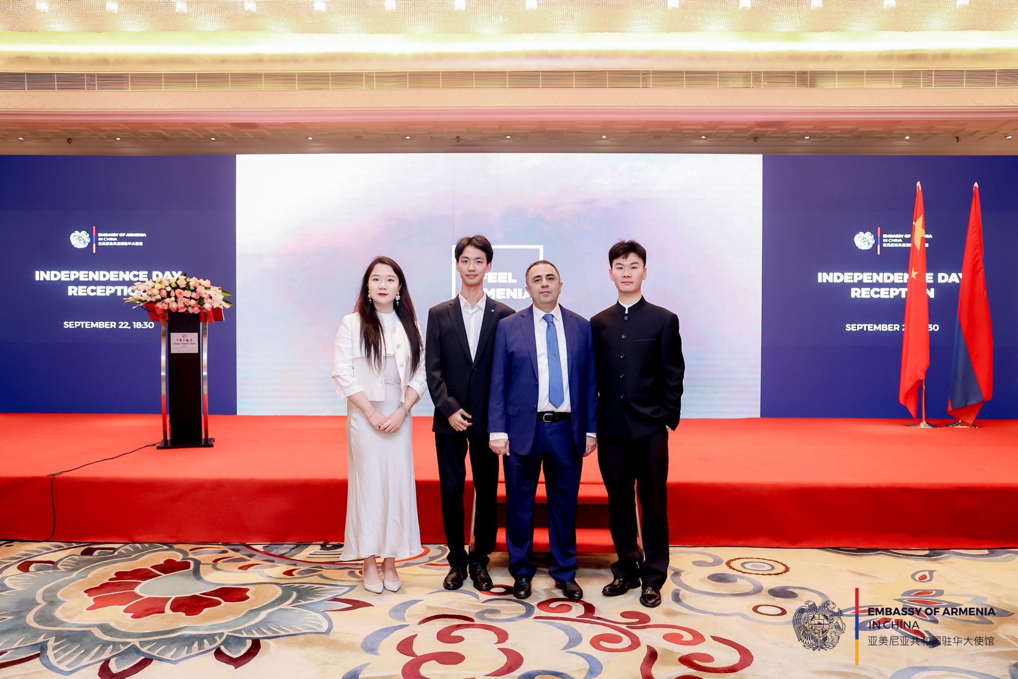 2025年9月22日,应亚美尼亚共和国驻华大使瓦赫·格沃尔克扬邀请,北外亚语专业师生出席了亚美尼亚独立纪念日招待会。中国外交部部长助理刘彬、亚美尼亚总理夫人安娜·哈科比扬以及两国各界代表共同参与此次活动。