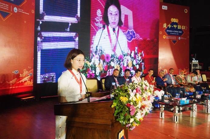 孟加拉语专业24级研究生朱美澄作为学生代表,在本次活动的中国-孟加拉国青年论坛中分享学习孟加拉语的个人经历,呼吁中孟青年以语言为桥,文化为舟,推动双边人文交流与未来发展。