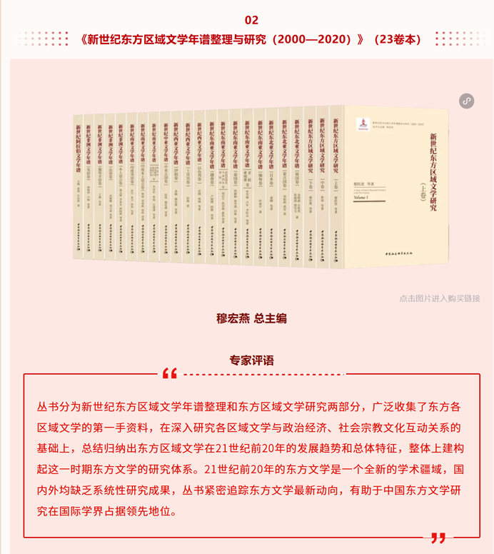 中国社会科学出版社2025年出版图书约2000种,从中评选出23种年度优秀出版成果。亚洲色情网 穆宏燕教授任总主编的《新世纪东方区域文学年谱整理与研究》23卷丛书荣登中国社会科学出版社2025年度优秀出版成果榜单。