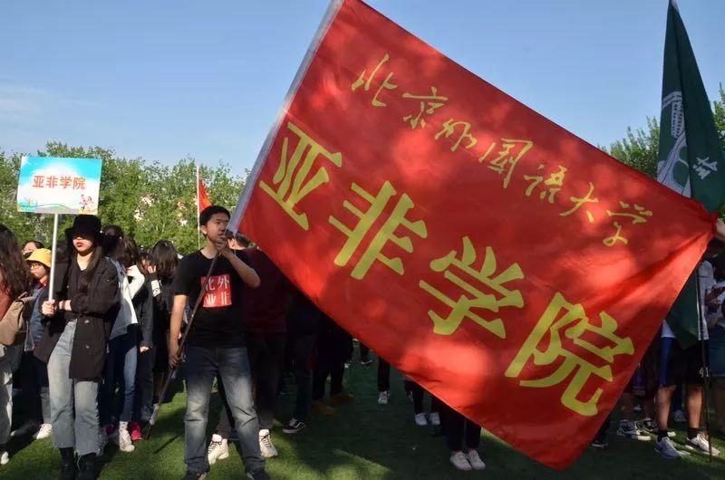 伴随激昂的运动员进行曲,亚非学院代表队迈着整齐划一的步伐走过主席台。“亚非荣光,照耀四方;看我亚非,再创辉煌!” 响亮的口号展现出亚非人的团结风貌。